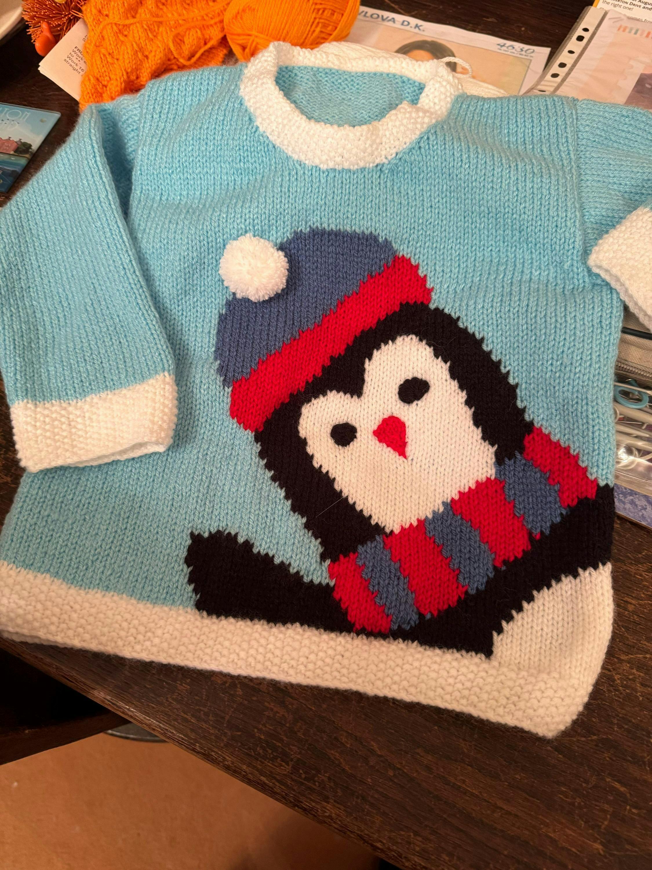 Peeking Penguin, Simple Intarsia Kids Penguin Christmas Sweater - Knitting Pattern