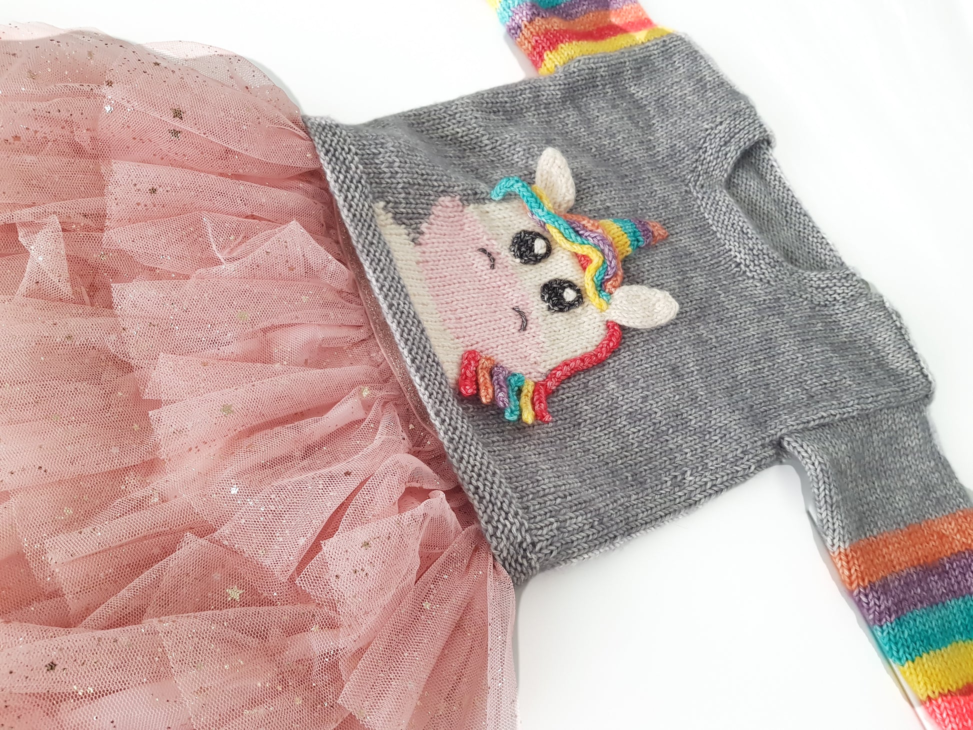 Little Unicorn, Baby & Toddler Intarsia Unicorn Jumper - Knitting Pattern