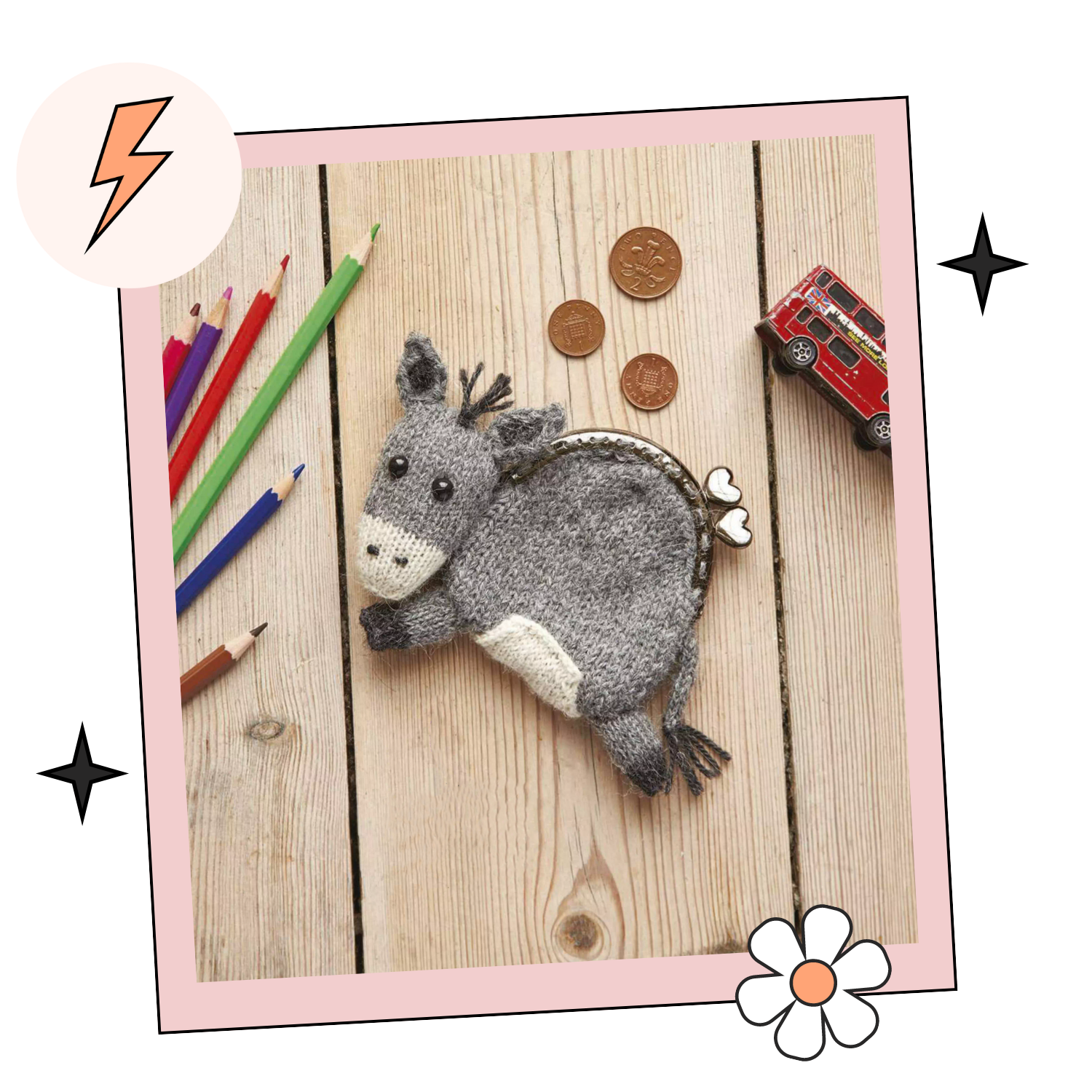 Hee-haw! Pop this little fellow into your bag and he will look after all of your loose change, receipts and other miscellaneous bits and bobs. With only a handful of small pieces to make and some simple sewing up to do at the end, this would be a fun project for a weekend and I think he will be an adoeable gift for kids and adults alike.