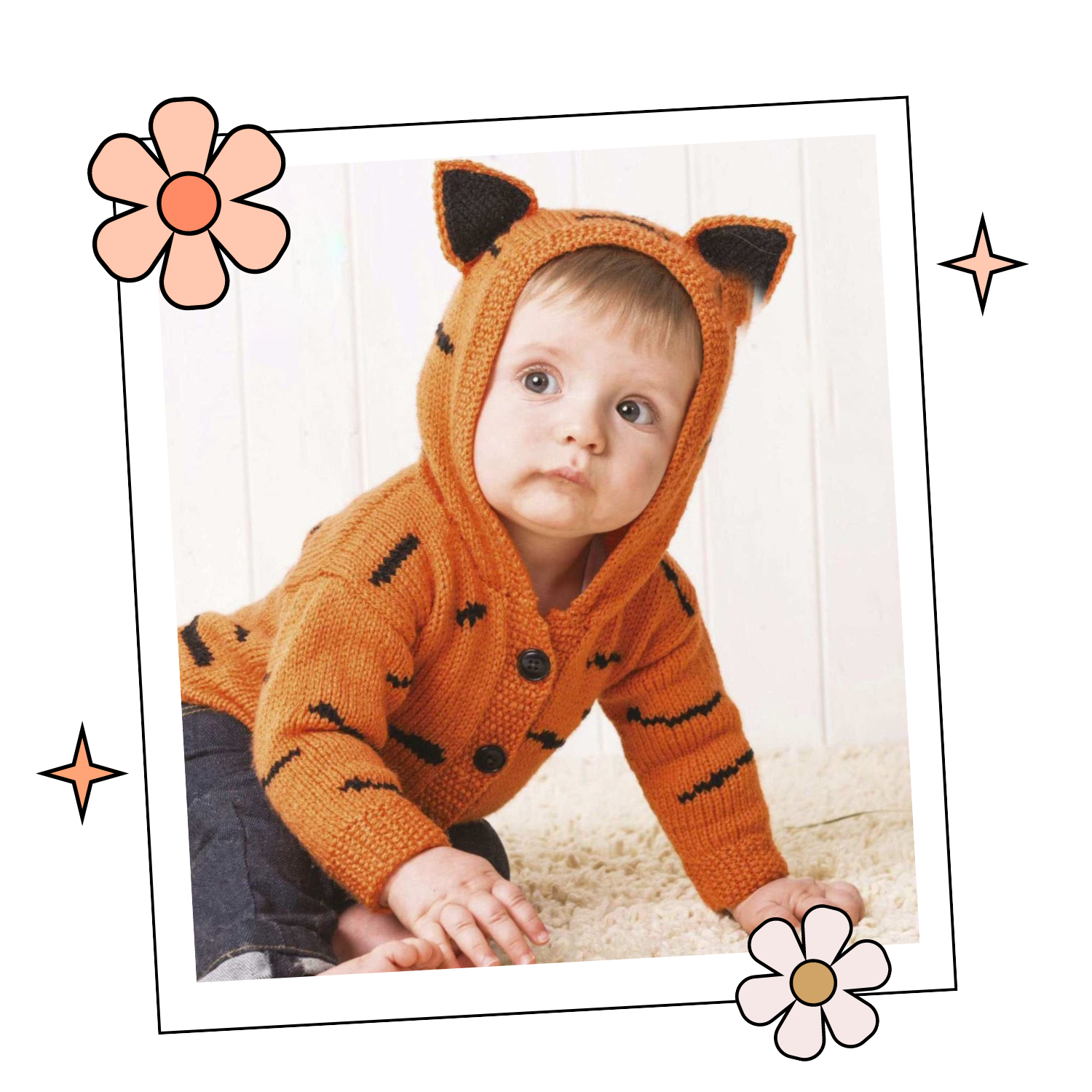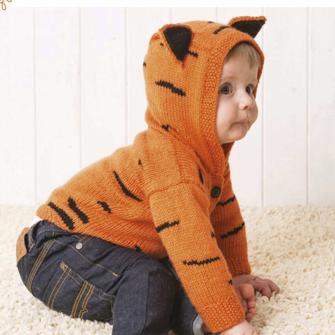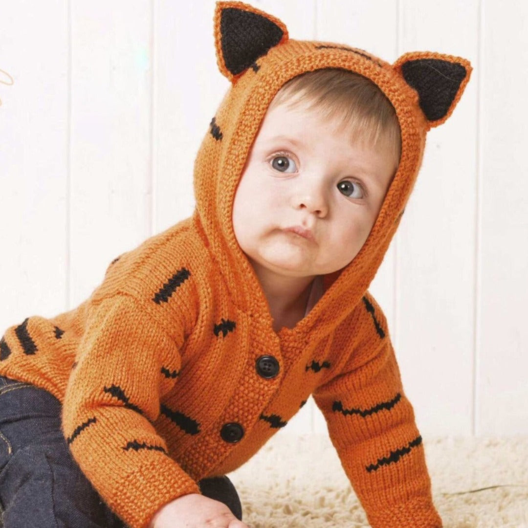 Baby Tiger Hoodie, Simple Hooded Baby Cardigan Knitting Pattern