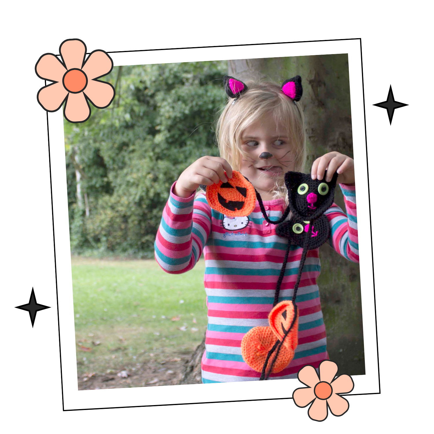 Crochet up lots of black cats and bright pumpkins to make a colourful garland. Just perfect for parties, or hang it over your door to make trick or treaters’ smile.
