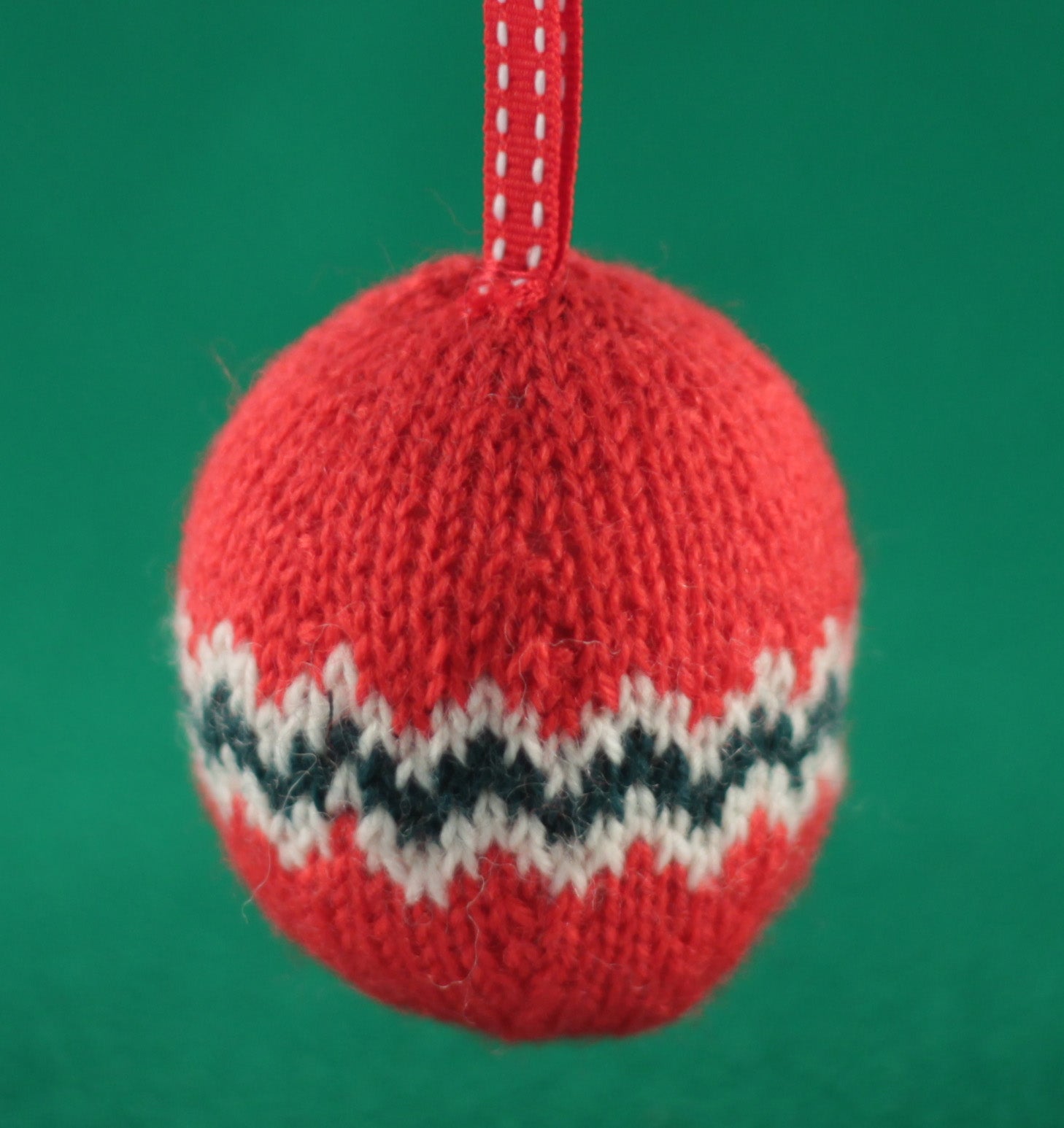 This cute Christmas Bauble will dress your Christmas Tree with style! Why not hang one in your car and replace your furry dice? String some onto a garland or attach to a parcel? Each bauble is worked in the round.