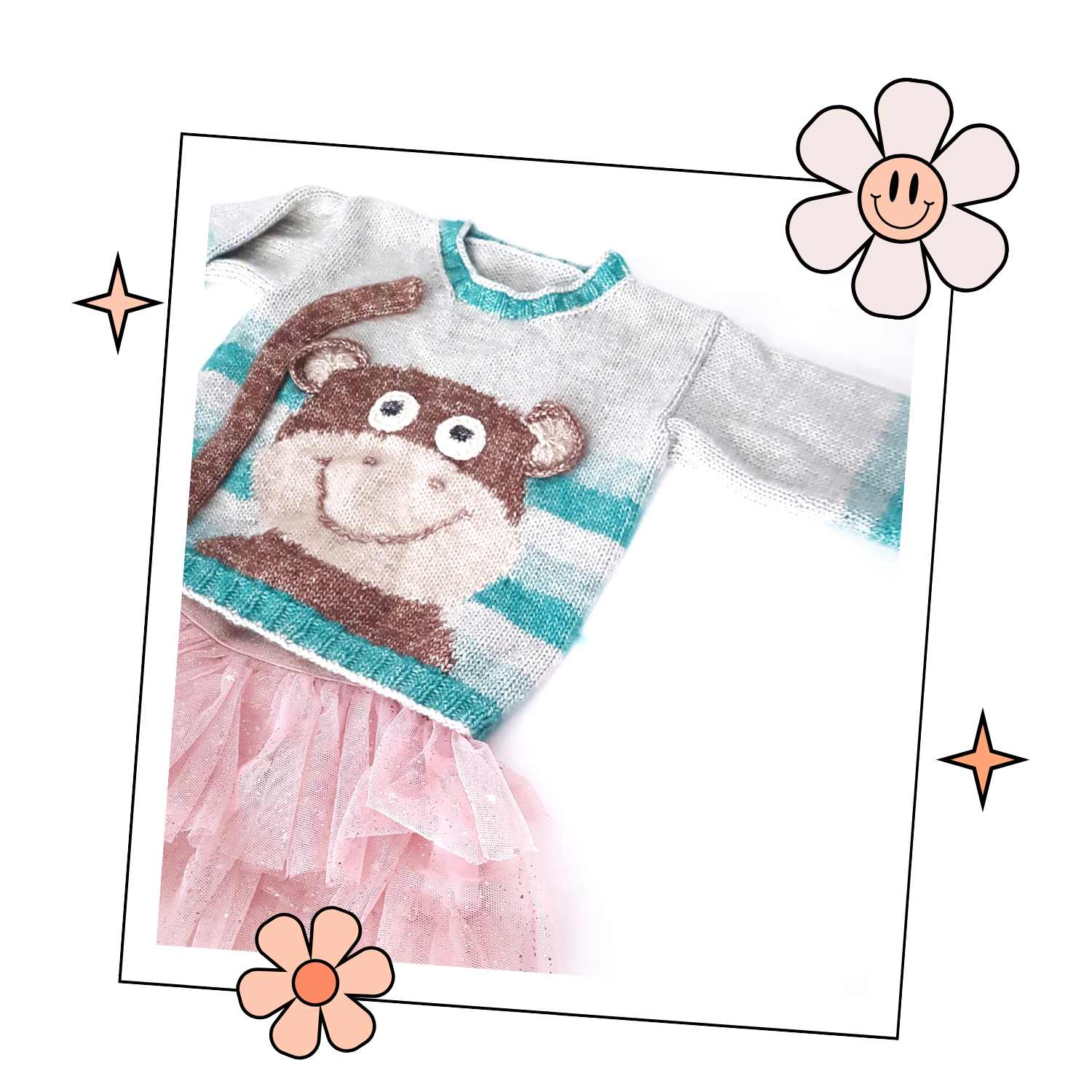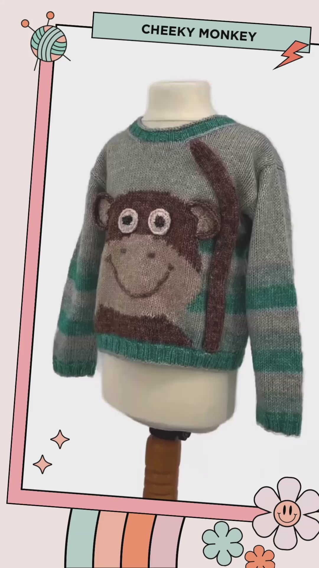 The Cheeky Little Monkey sweater will delight girls and boys from ages 2-11 years. This playful pullover is the perfect gift for those mischief making little ones.