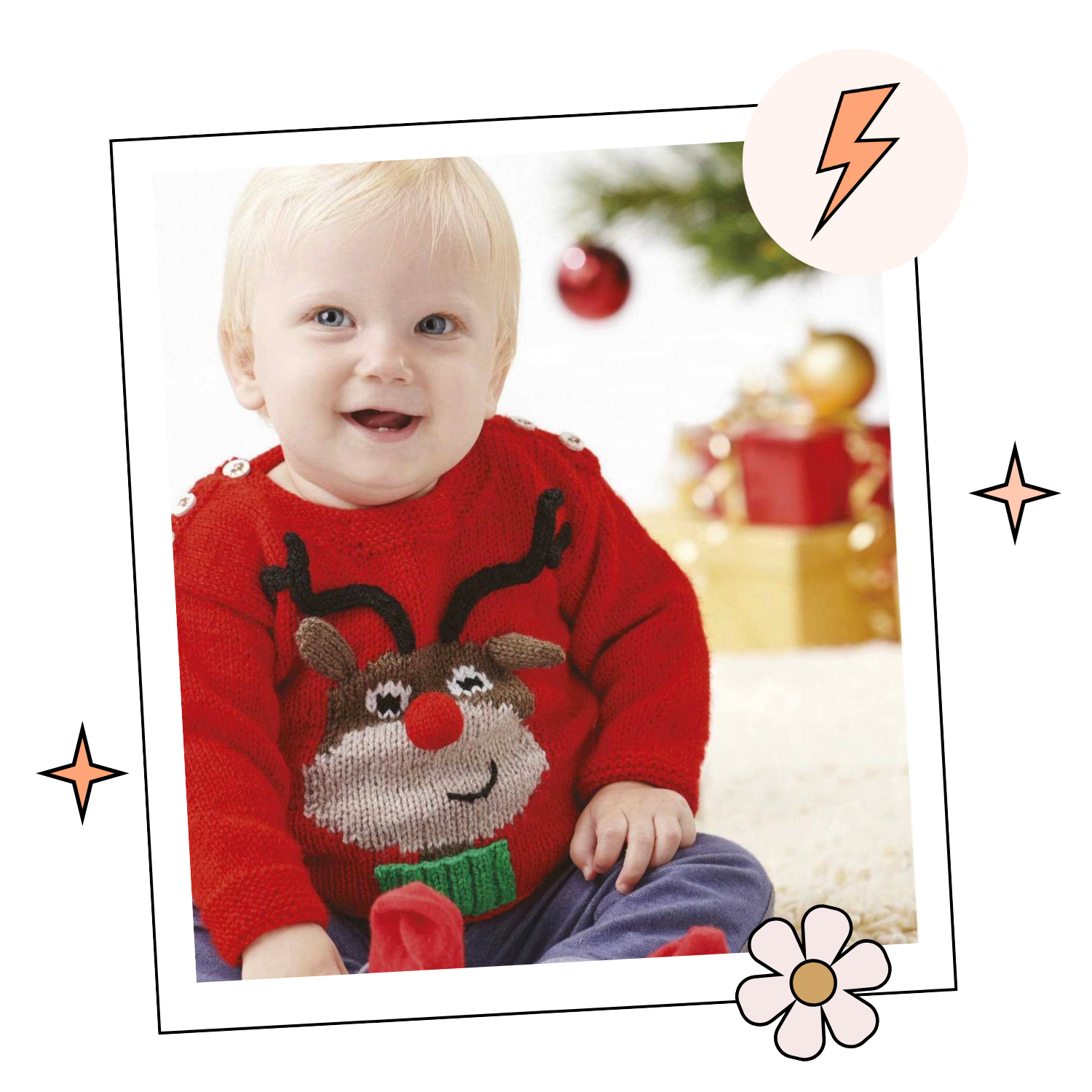 Baby Christmas Jumpers are as much fun to knit as they are to gift. Rudolph is always a favourite character at Christmas time, that shiny red nose and cheeky smile, pulling Santa's sleigh and helping deliver presents to boys and girls around the world!