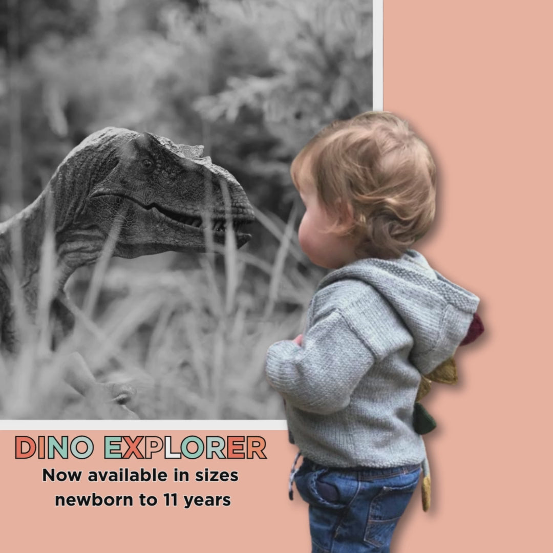 Dinosaur Explorer Hooded Cardigan, Kids Dino Sweater - Knitting Pattern