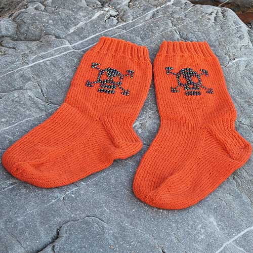 The skully motif is applied using a crochet hook to knit the beads into the fabric as you go, no spending hours threading beads on to your yarn!! There is of course a link to a fantastic video tutorial on applying beads with a crochet hook included in the pattern. There is also a link to get you started knitting socks (just in case you need it).