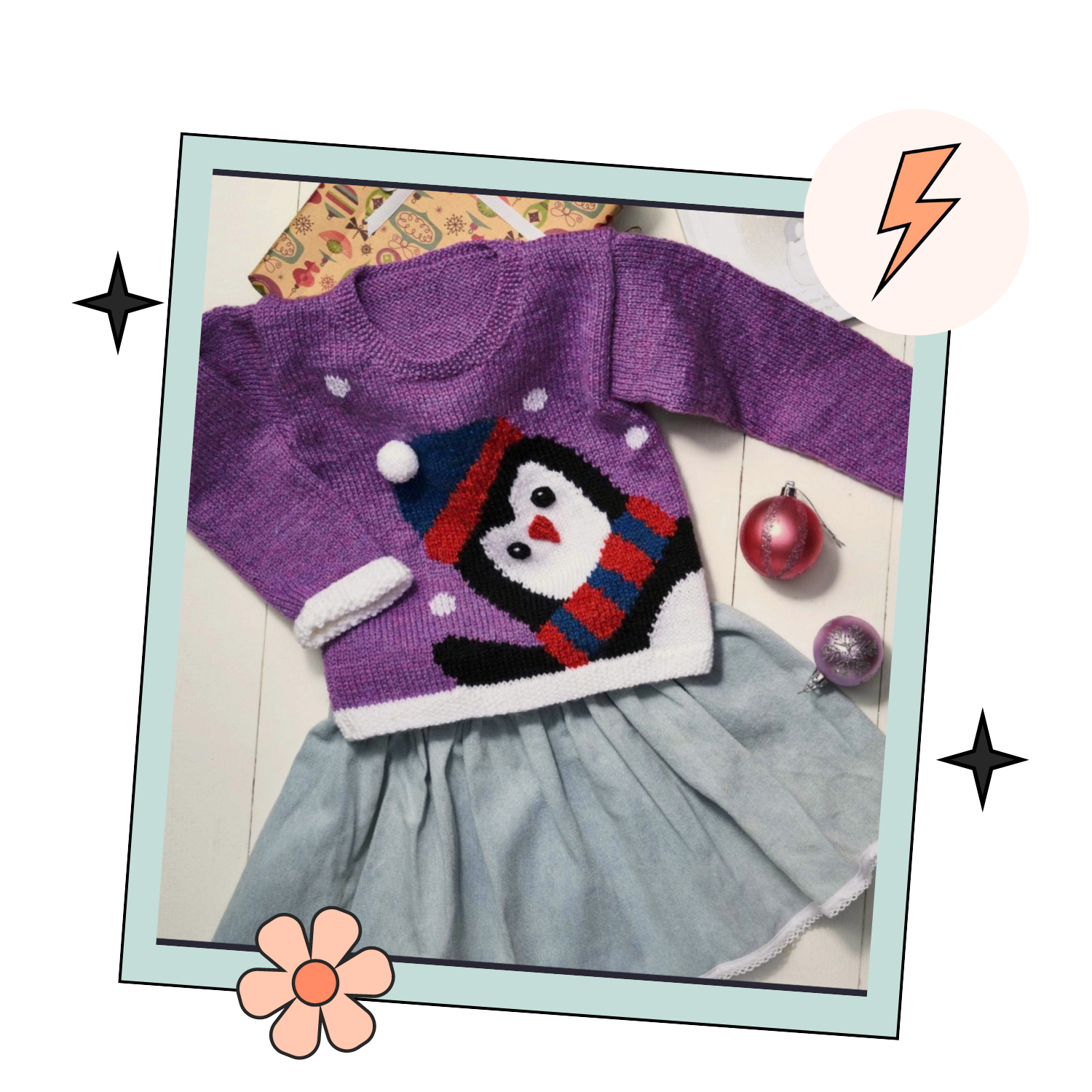 Peeking Penguin, Simple Intarsia Kids Penguin Christmas Sweater - Knitting Pattern