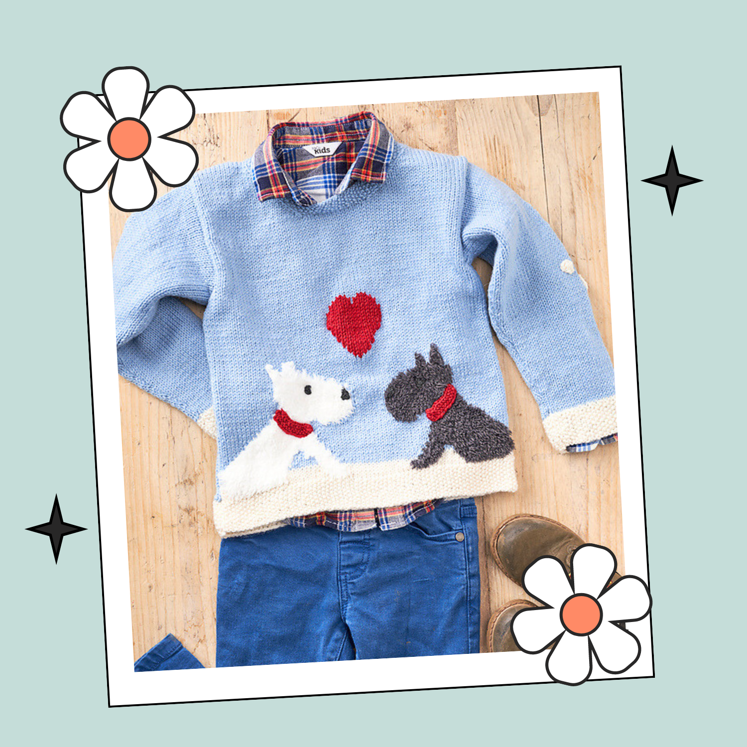 Puppy Love, Simple Intarsia Kids Dog Themed Jumper - Knitting Pattern