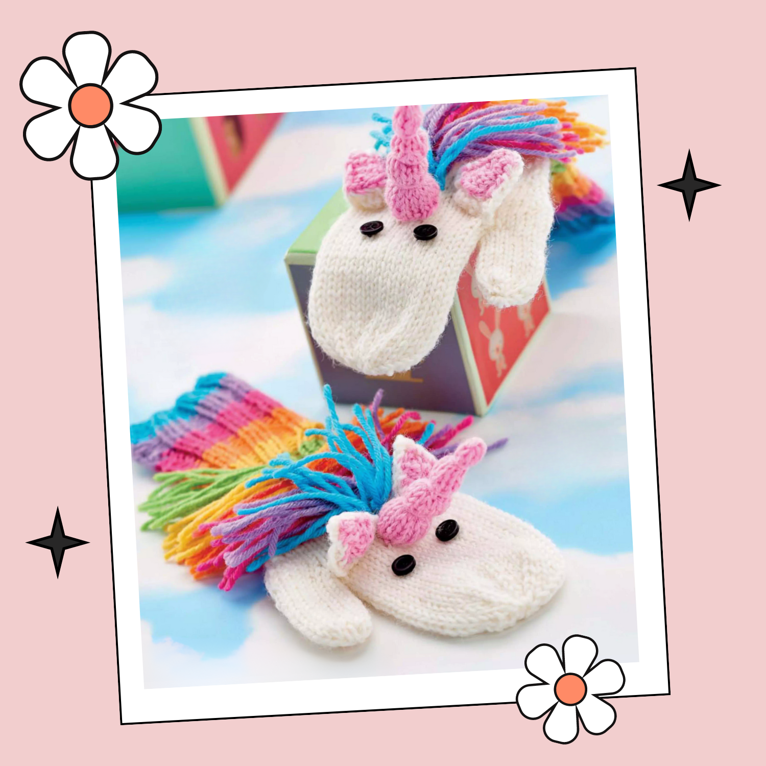 Rainbow Unicorn Mittens for Children - Knitting Pattern
