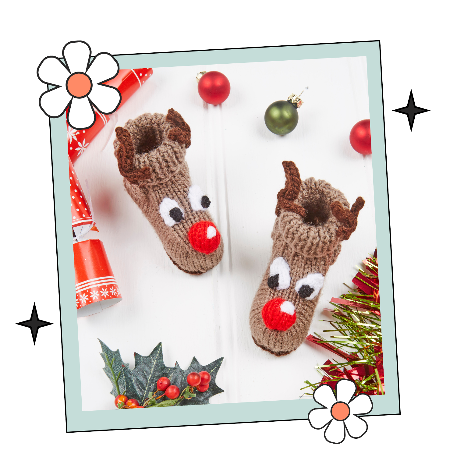 These reindeer booteis, complete with cheeky red noses, are perfect for keeping little toes warm during the festive season.