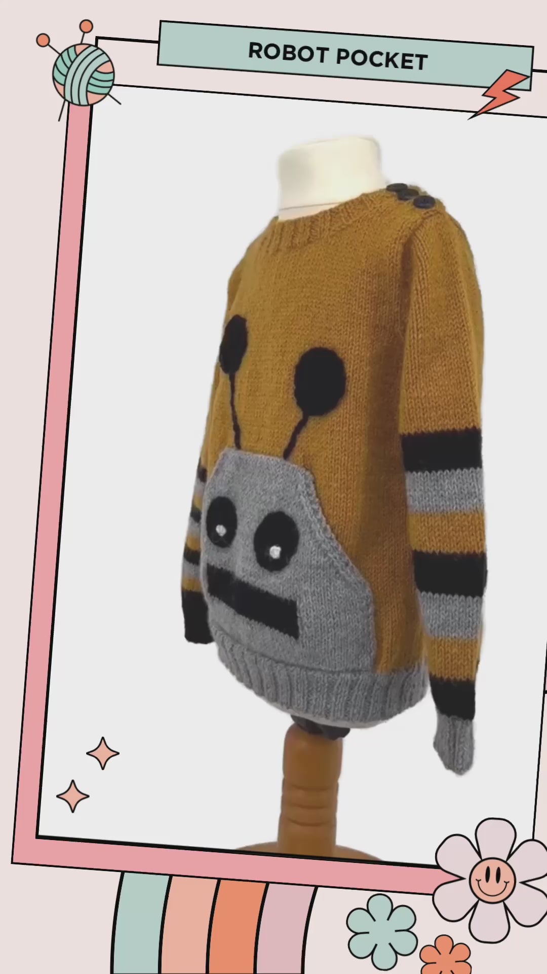 Introducing the Robot Pocket Sweater, a whimsical and playful addition to any little one’s wardrobe! 🤖🧶