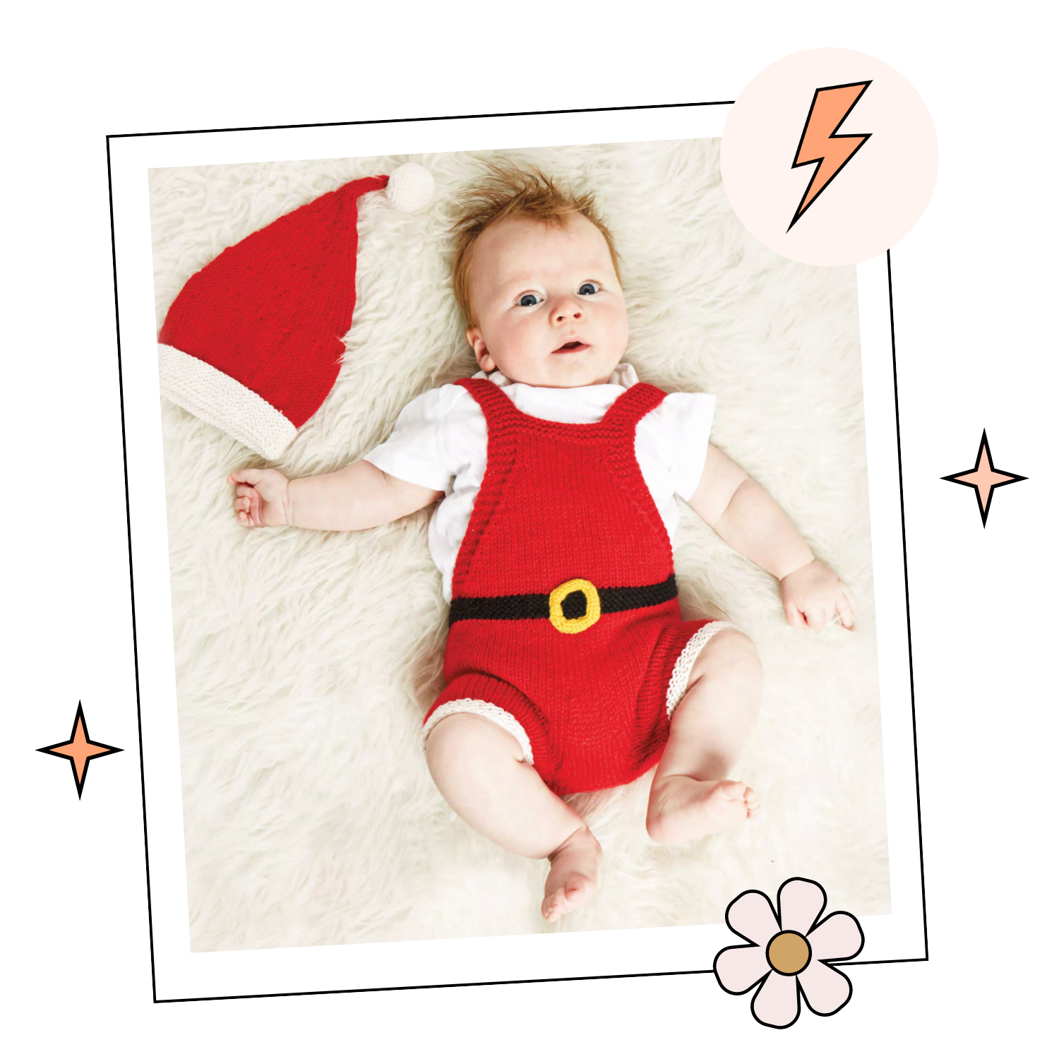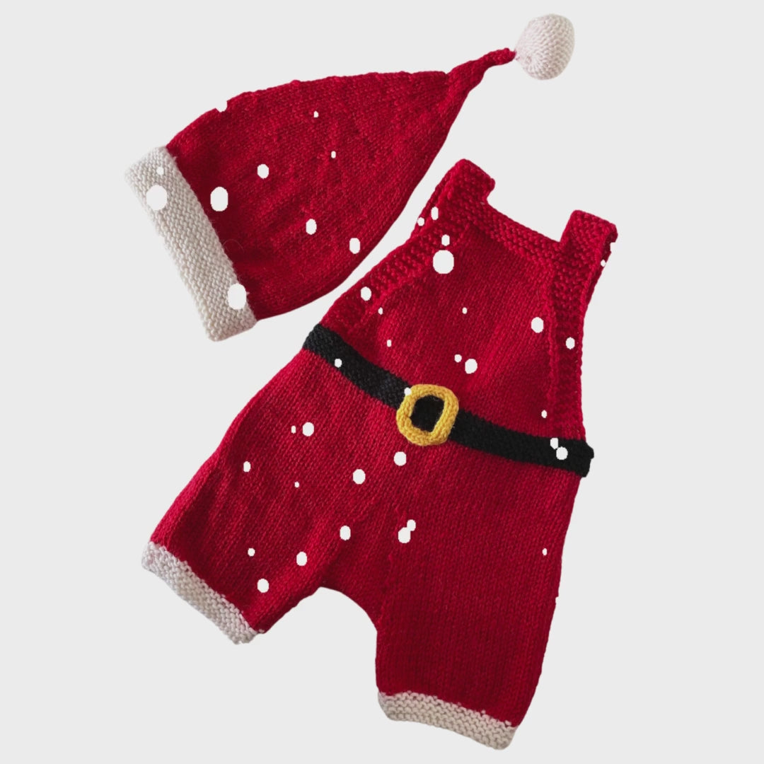 Santa Claus, Baby Christmas Romper & Hat Set - Knitting Pattern