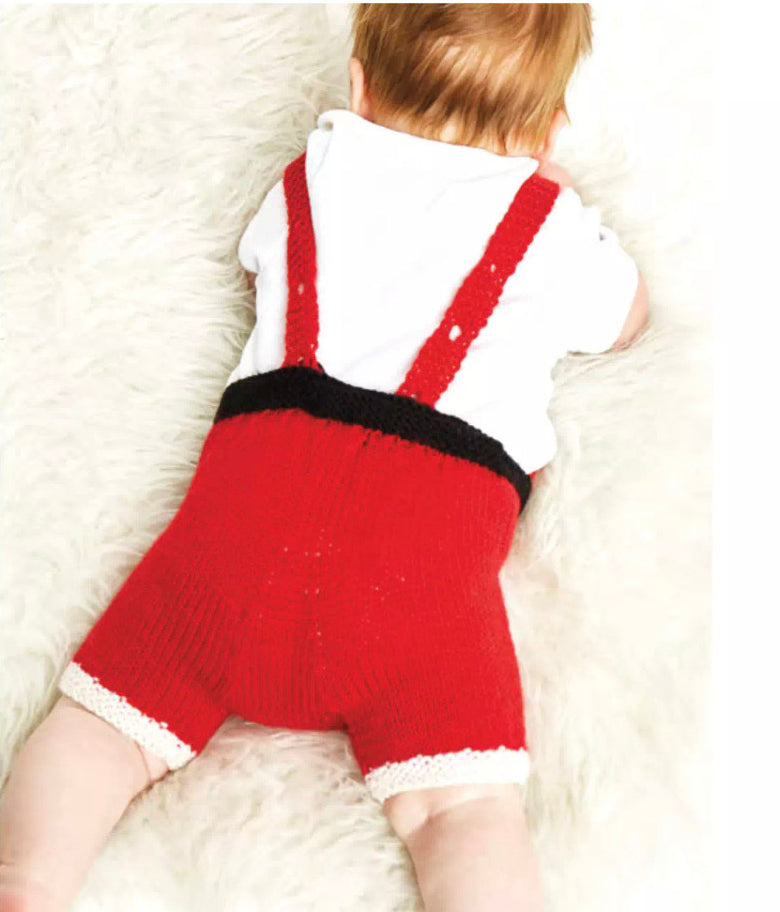 The Santa Baby, Romper is a quick stocking stitch romper knitted flat and seamed. Colour changes and garter stitch edging make this a breeze to knit.