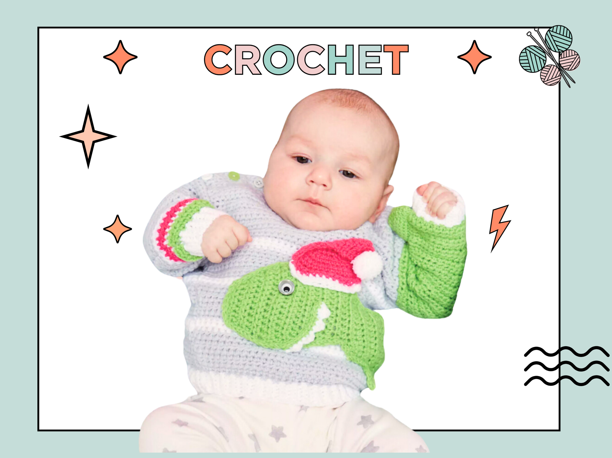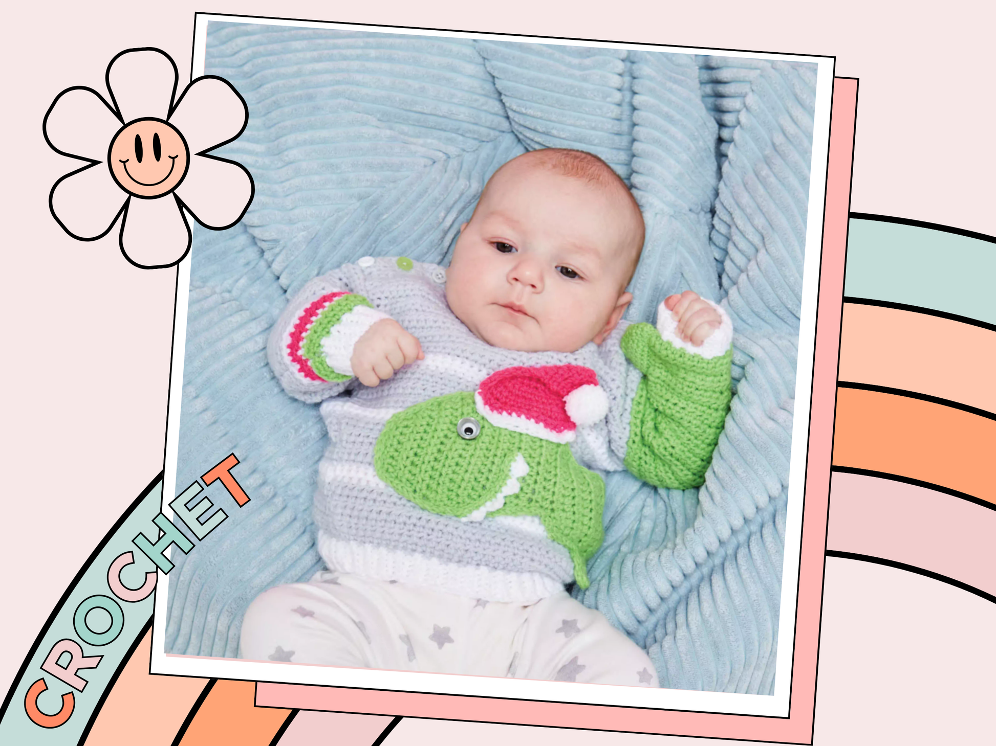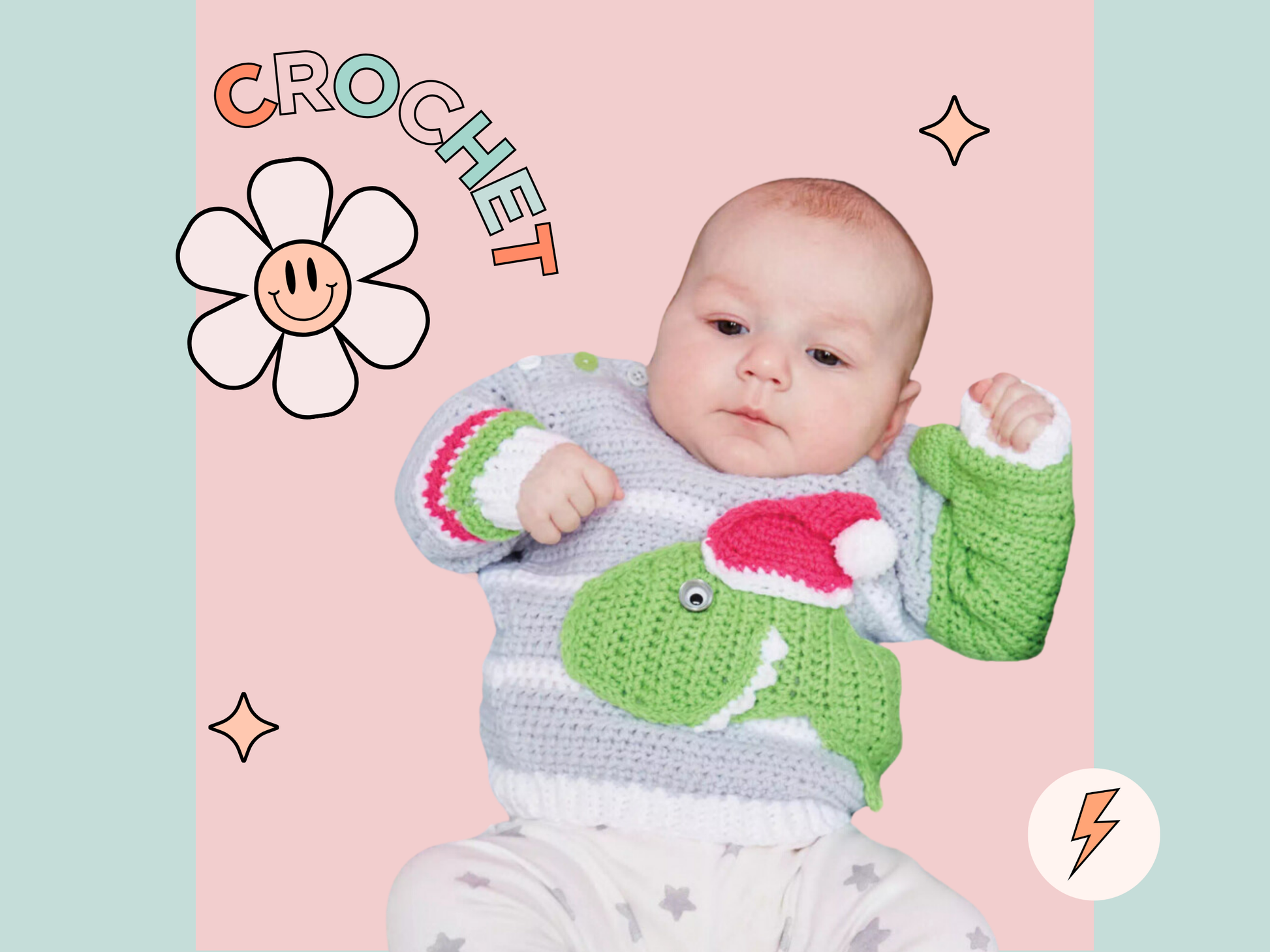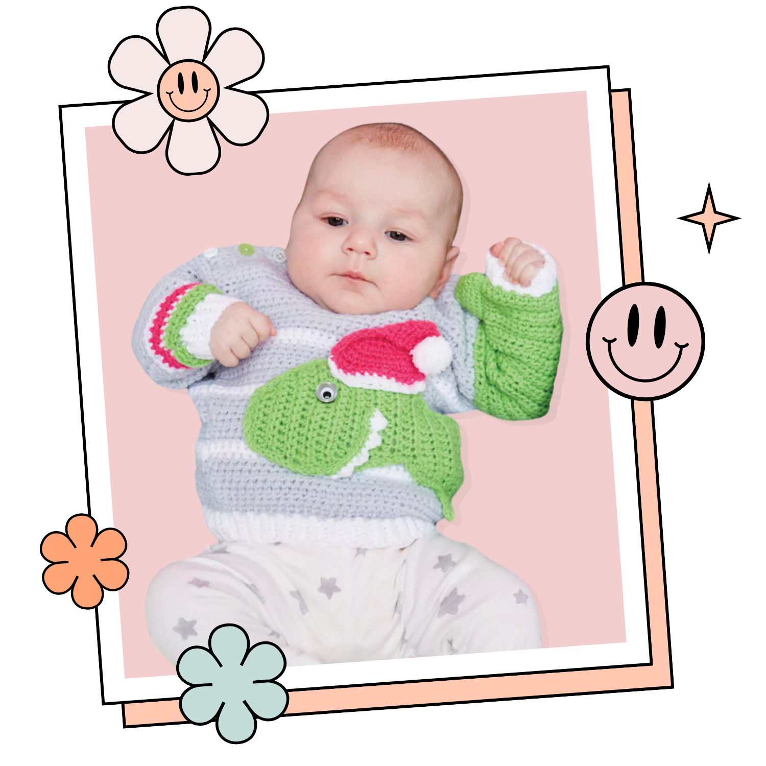 A Crochet Baby Dinosaur Christmas Jumper is too cute only to wear for Christmas.