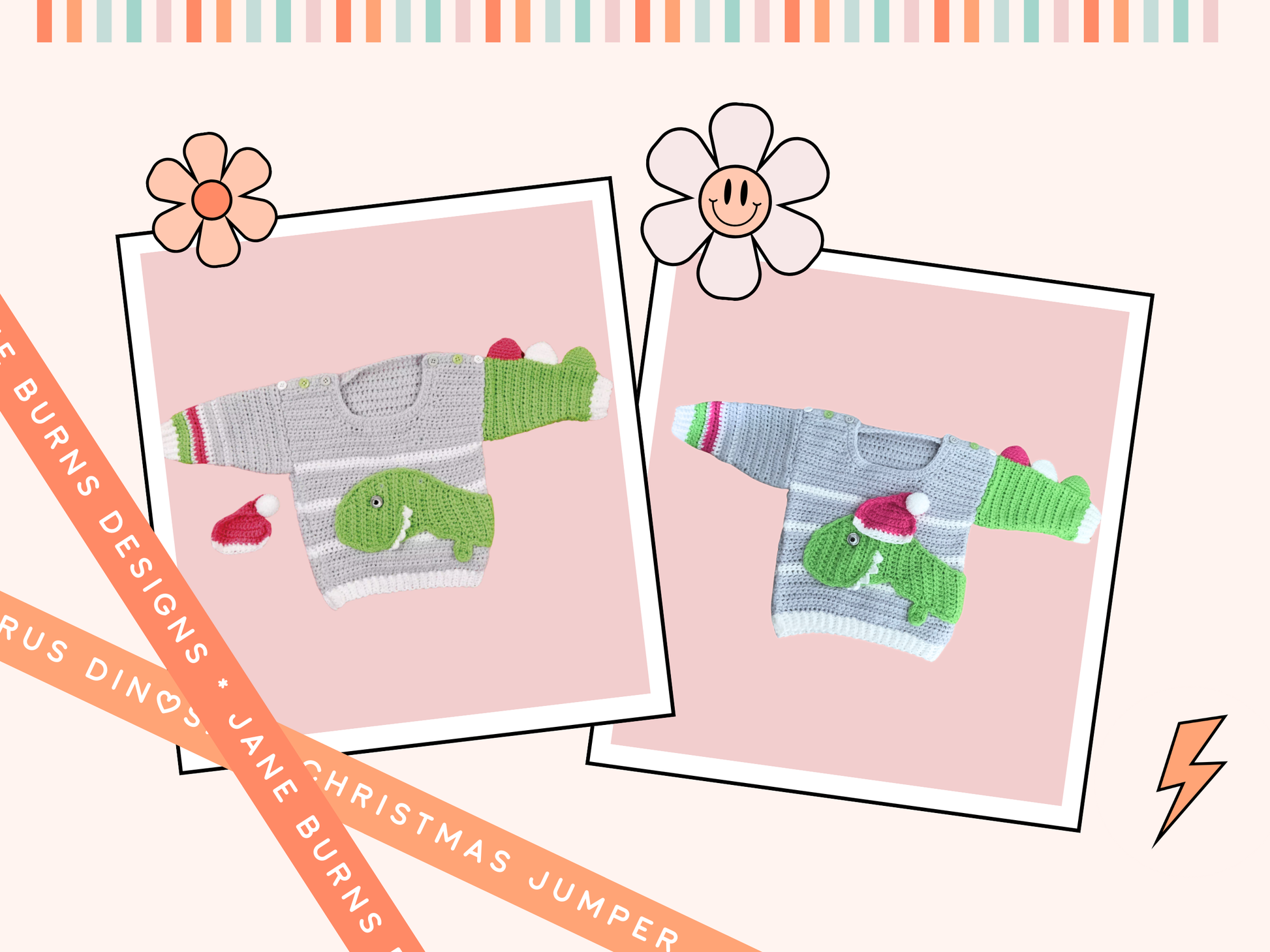 Santa Saurus Sweater Baby Christmas Dinosaur Jumper Pattern CROCHET