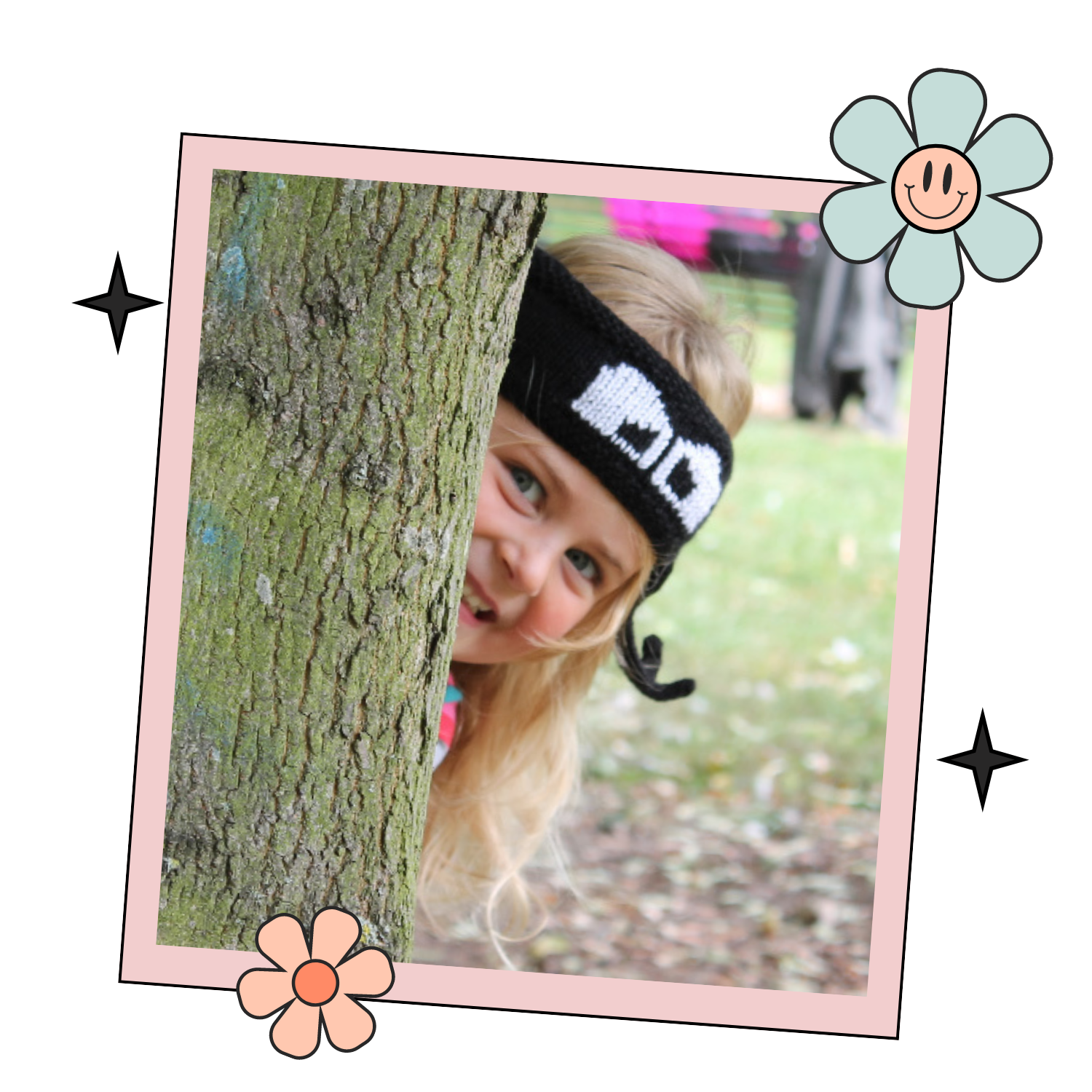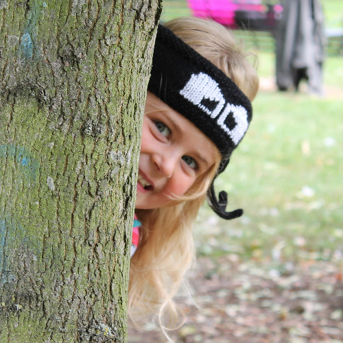 This fun headband is worked in the round. The I-cord legs are stitched on and the eyes Swiss darned to give it some charm!