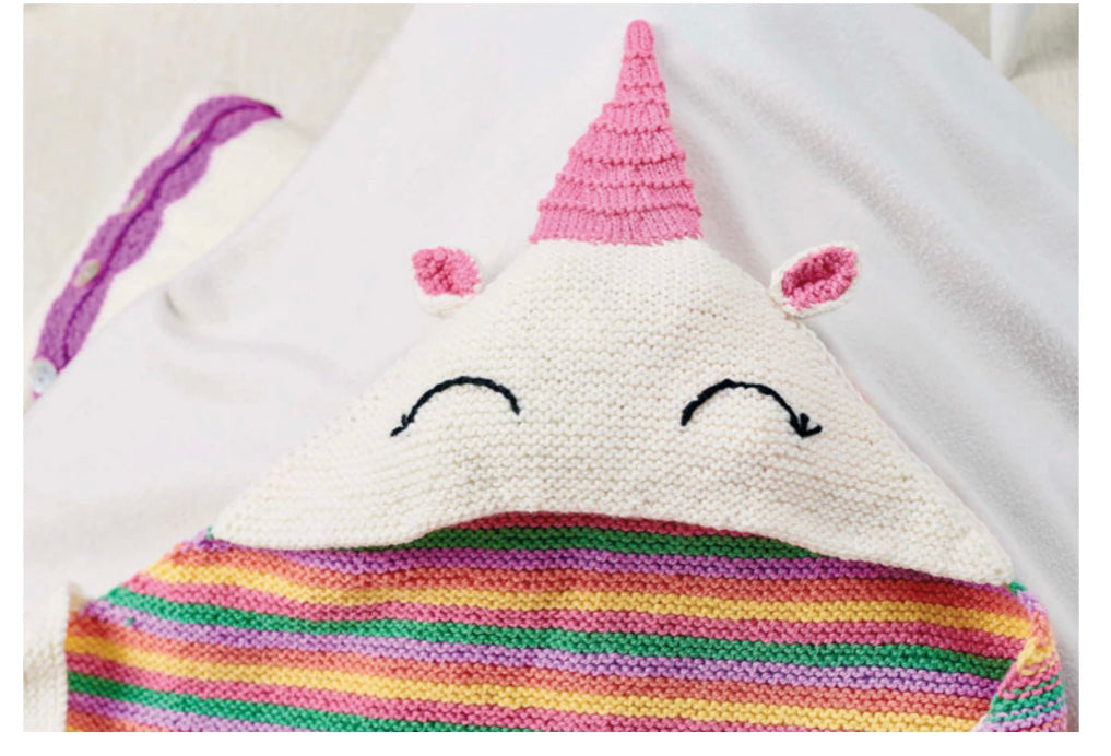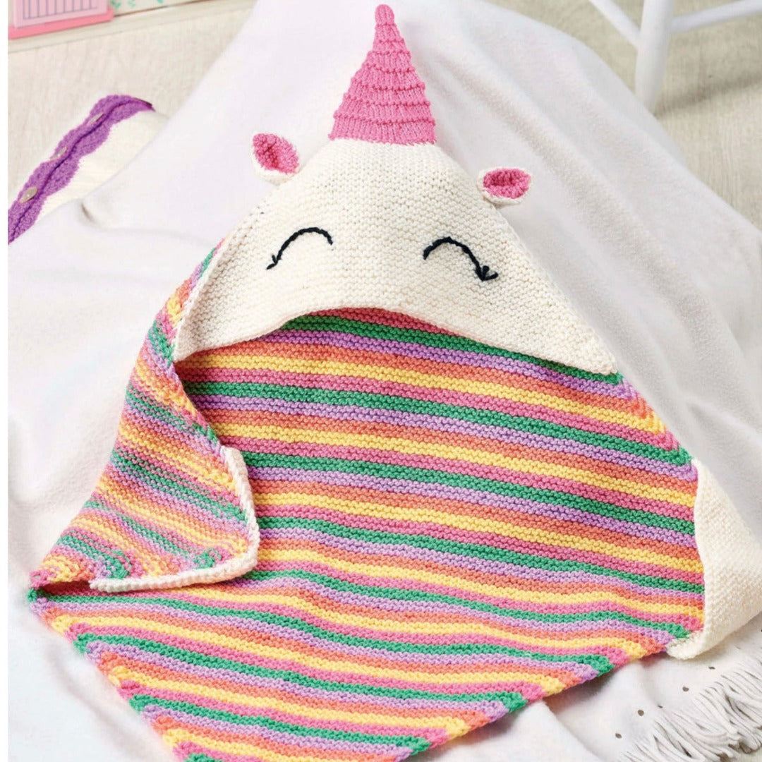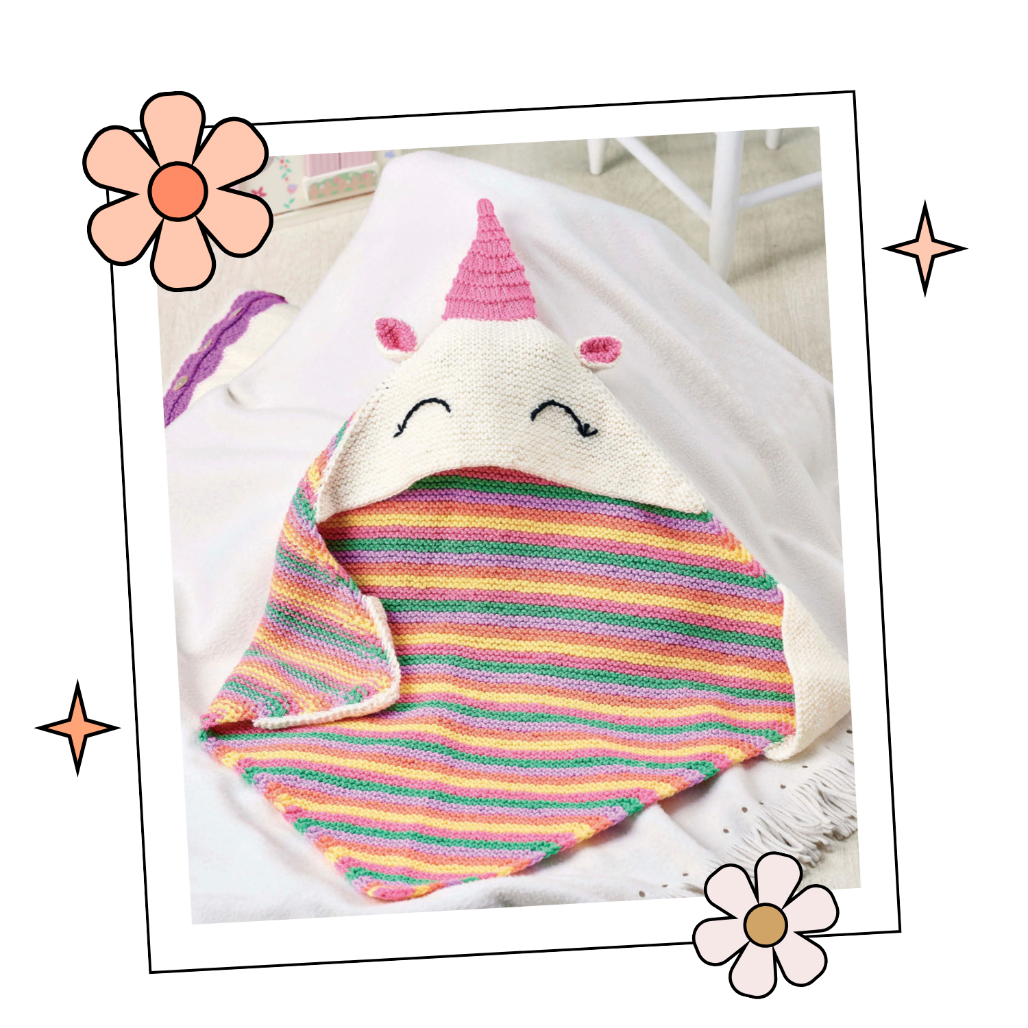 Unicorn Dreams Simple Hooded Baby Blanket - Knitting Pattern